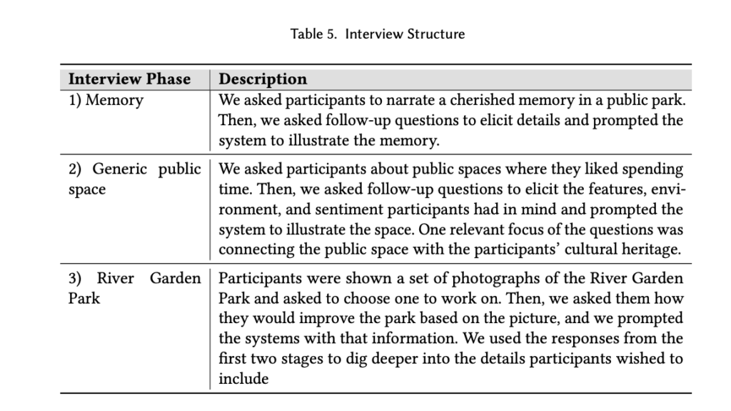 - IGAI-mediated interviews — Community sessions (Los Angeles, Coney Island) in which participants reacted to and iteratively adjusted AI-generated images during the conversation.