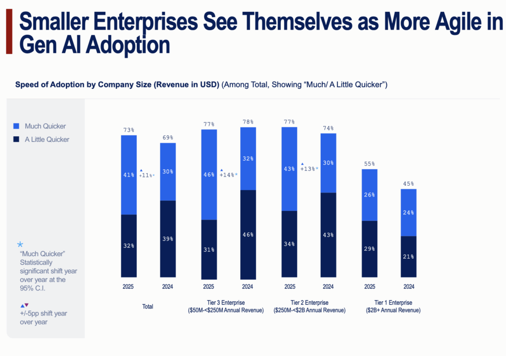 “Smaller and mid-sized enterprises report greater agility and faster adoption cycles, while larger enterprises face organizational inertia.”