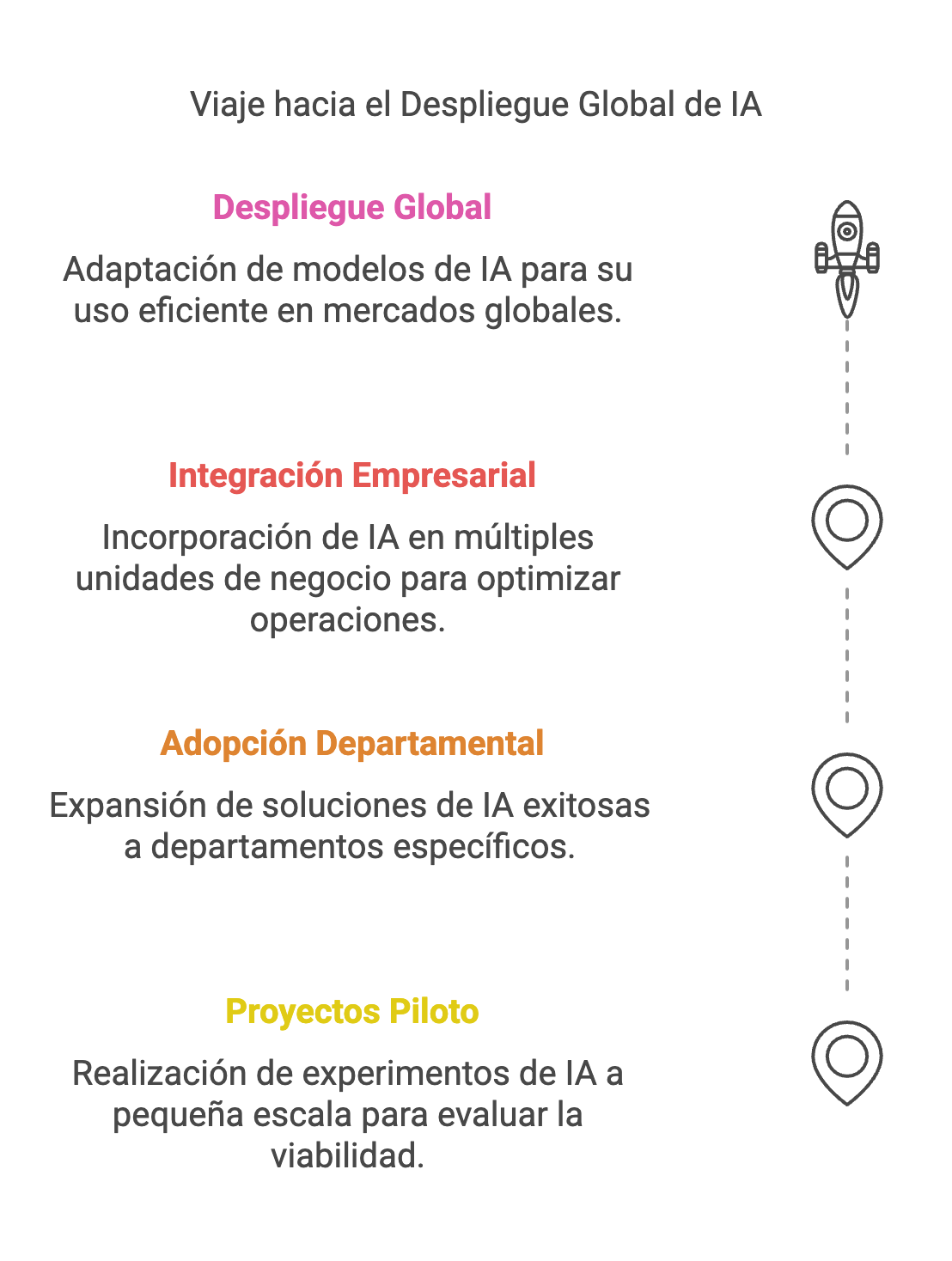 - Adopción de IA a Nivel Departamental: Los pilotos exitosos pueden expandirse a departamentos específicos (por ejemplo, chatbots de servicio al cliente con IA en equipos de soporte).