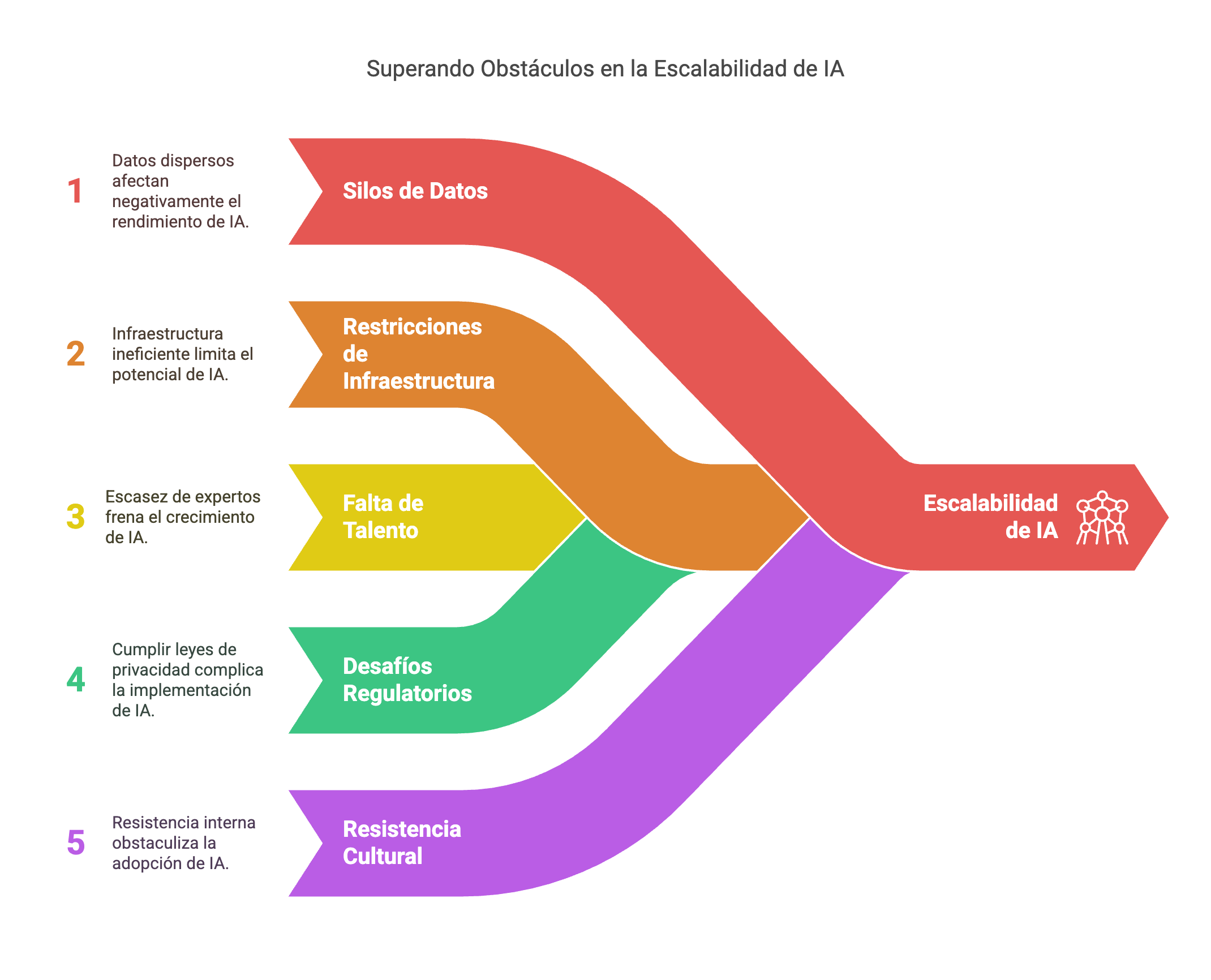 Para escalar IA eficazmente, las organizaciones deben abordar los siguientes obstáculos: