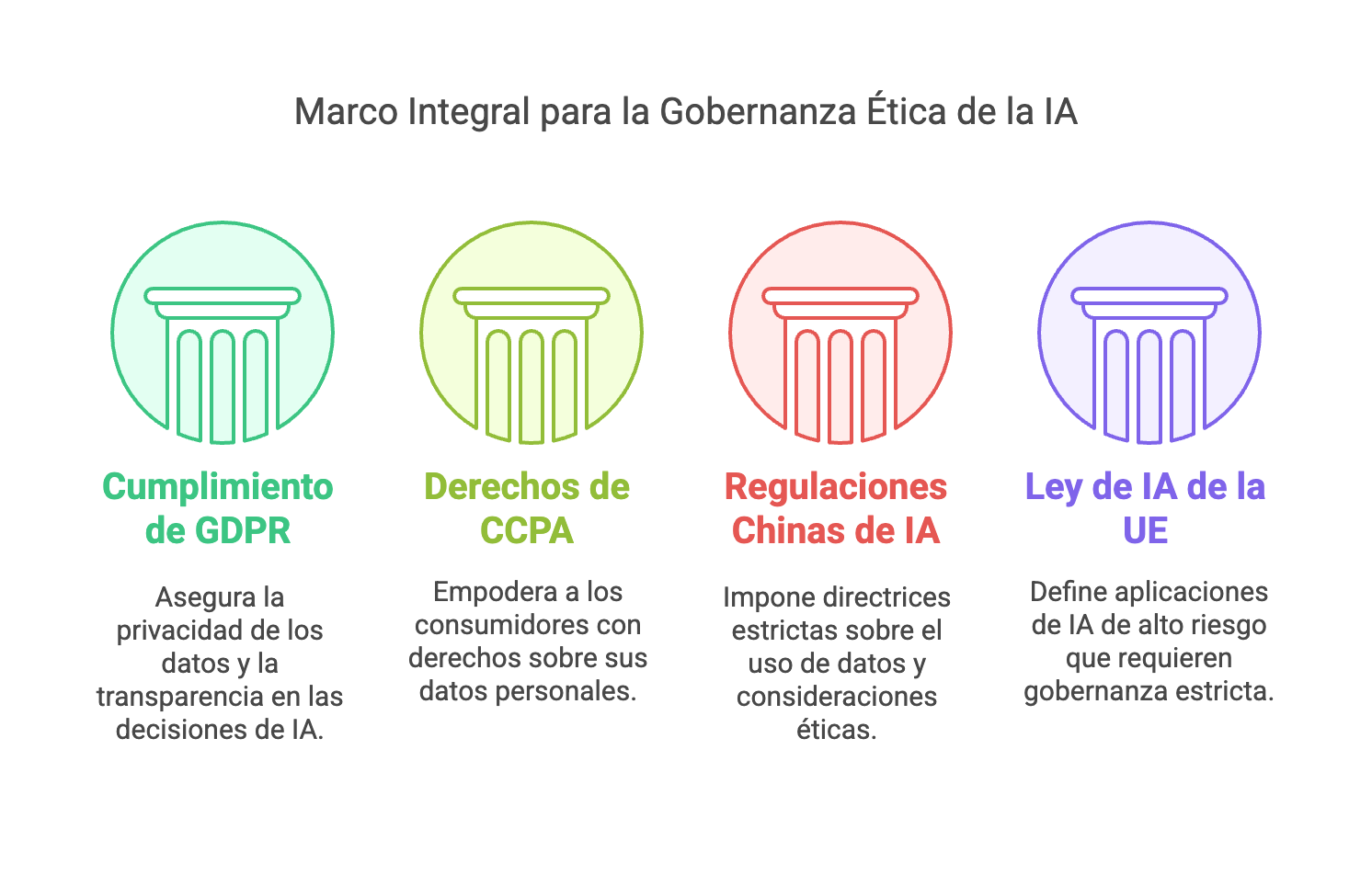 - Cumplimiento y Gestión de Riesgos: La IA debe cumplir con regulaciones de la industria y normas éticas corporativas.