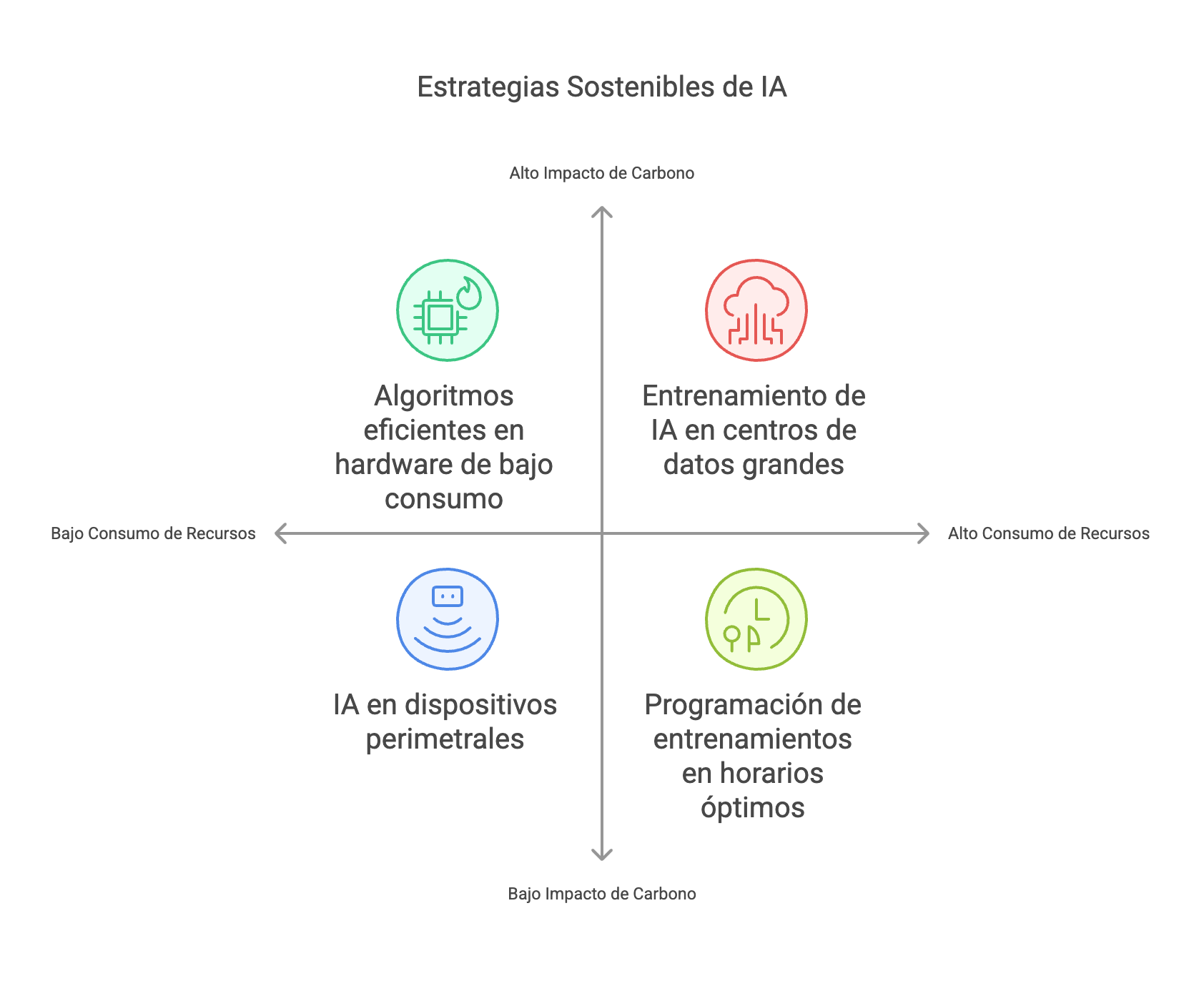 Ejemplo: Entrenar el modelo GPT-3 de OpenAI emitió aproximadamente 550 toneladas métricas de CO₂, equivalente a las emisiones de por vida de cinco automóviles.
